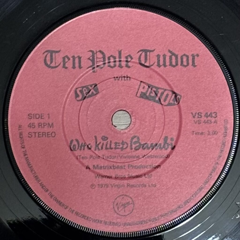 Today’s feature is the UK single Who Killed Bambi / Rock Around The Clock (VS443), released under the name Ten Pole Tudor with Sex Pistols as part of The Great Rock ’n’ Roll Swindle series.