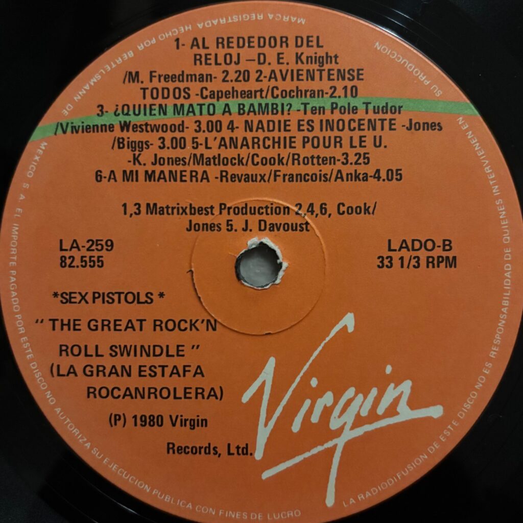 ・スリーブに”Rock De Los 80’s”のステッカーと”赤竜双子ラベル”がメキシコ盤の初回盤みたいですが、自分のは、ステッカーもなくVirginの緑・赤ラベルなので2ndプレスですね。