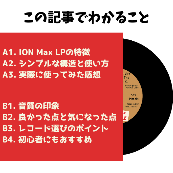 ION Max LP は、いわゆる“本格オーディオ”ではないけど、レコードを始めたい人にはちょうどいいバランスのプレーヤーです。